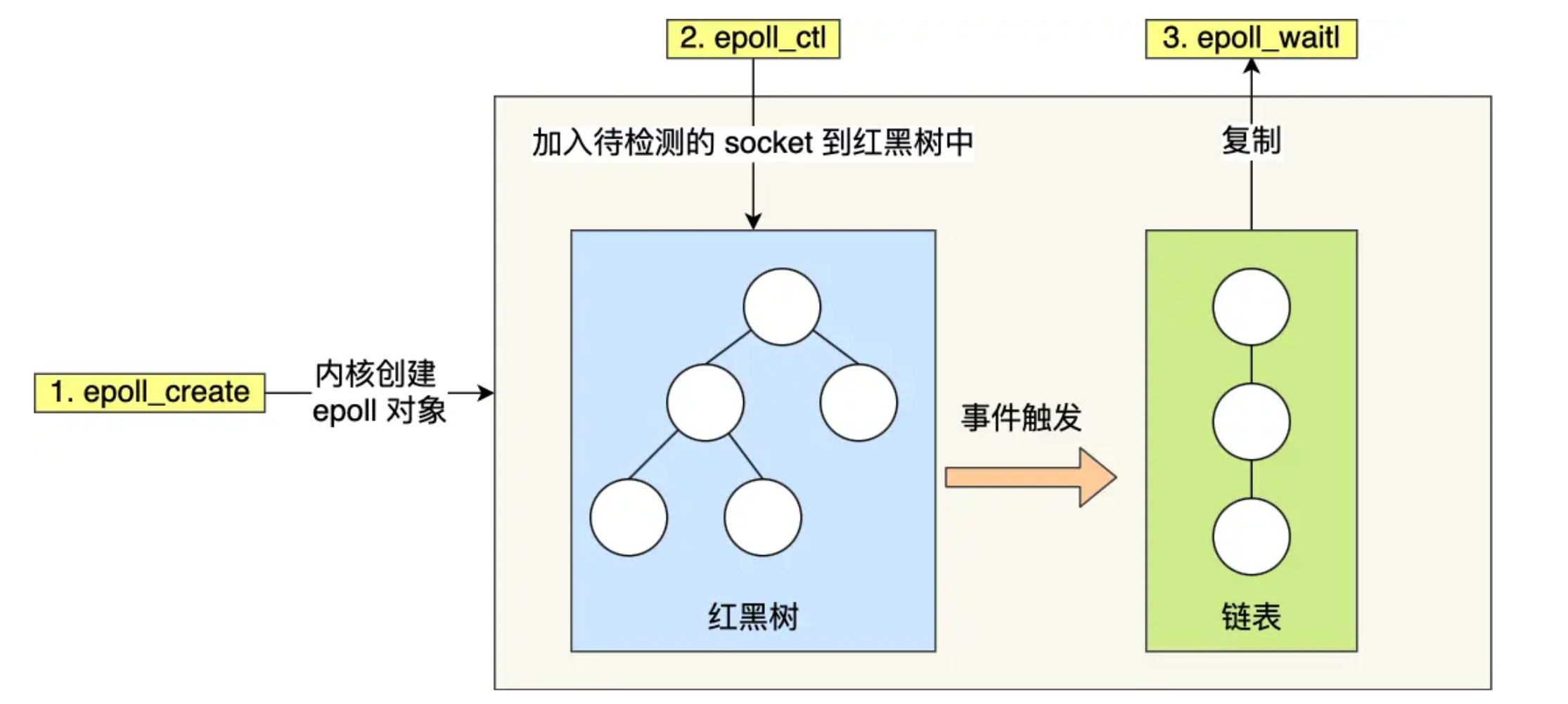 - 内核里维护了个 linked list, 相当于个 就绪事件列表