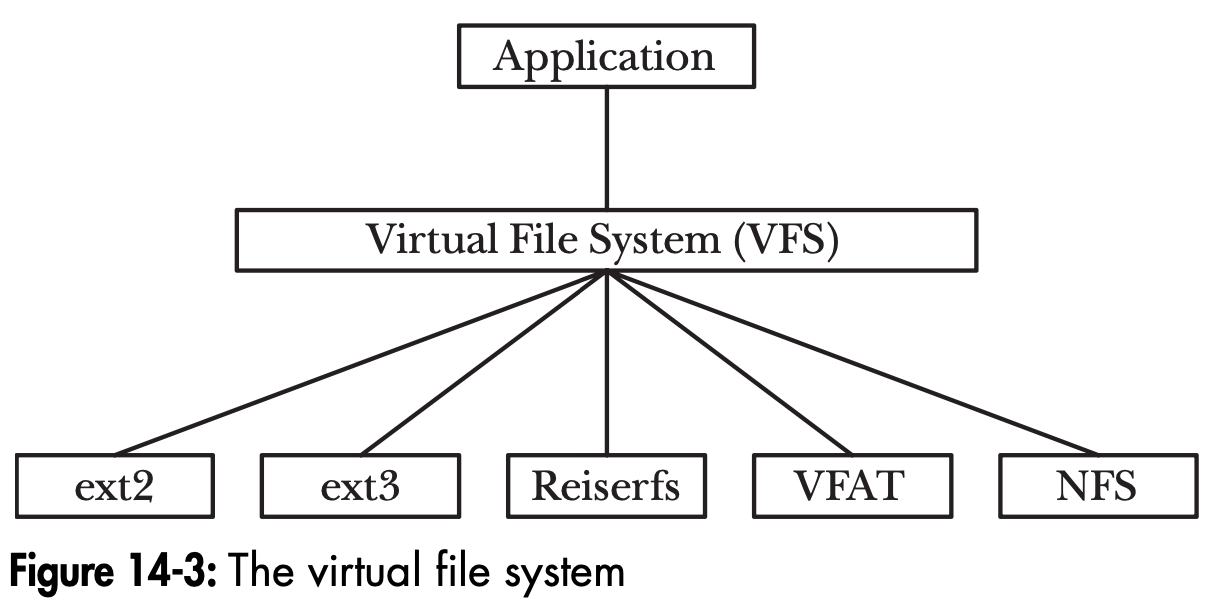 - ext2, 3, 4 这些不同的 文件系统 的实现上有差异, virtual filesystem 作为一个抽象层, 提供接口来统一和这些不同物理文件系统的交互, 屏蔽了不同物理文件系统的差异性