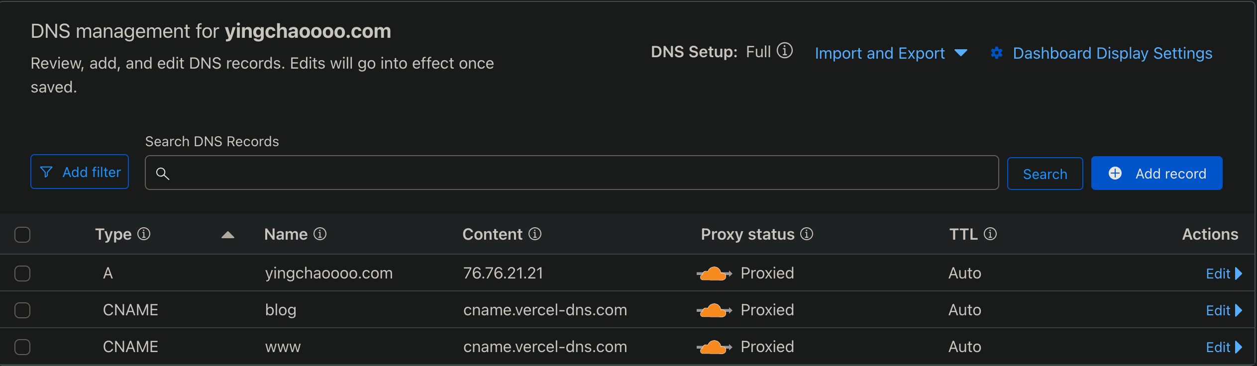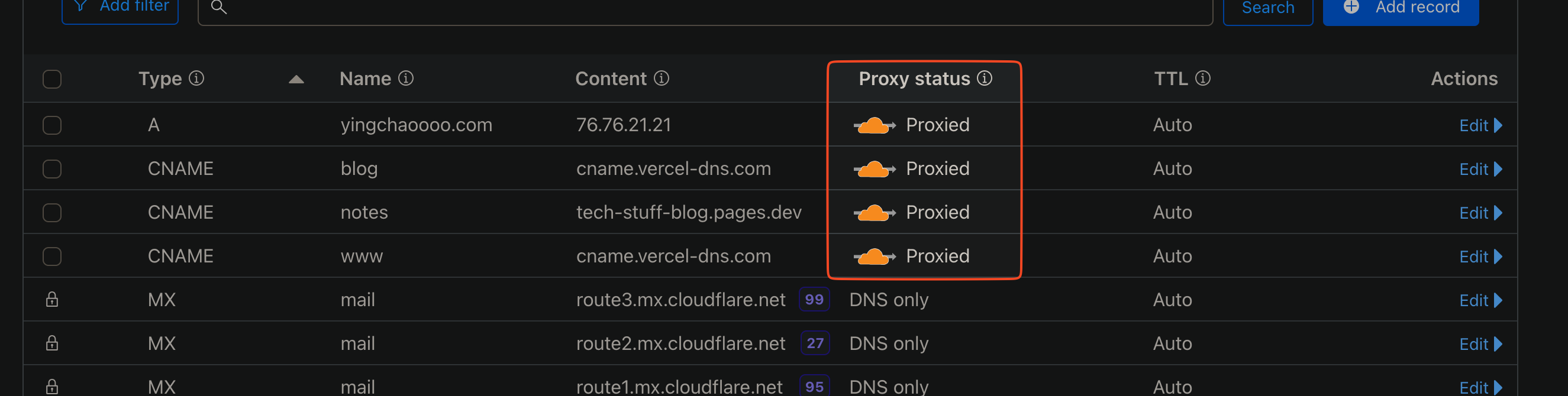 | proxy mode(SSL full) | what to pay attention to | blog.domain.com CNAME to user.github.io | blog.domain.com A record to user.github.io | domain.com A record to user.github.io |