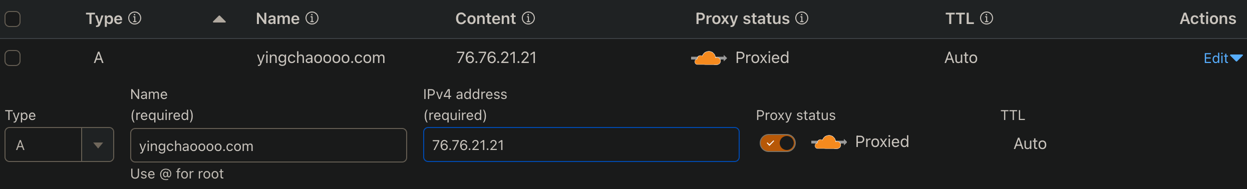 - [?] subdomain A Record 的时候 SSL 过不了, 因为 github 没有 subdomain 的 cert; 但是 为什么 apex domain 用 a record 又可以呢?