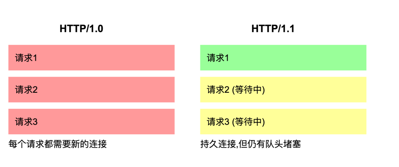 - 有响应阻塞的问题: 服务端收到多条请求, 如果第一条请求时间过长, 后面的请求也一直在排队等着, 会导致客户端长时间收不到回复