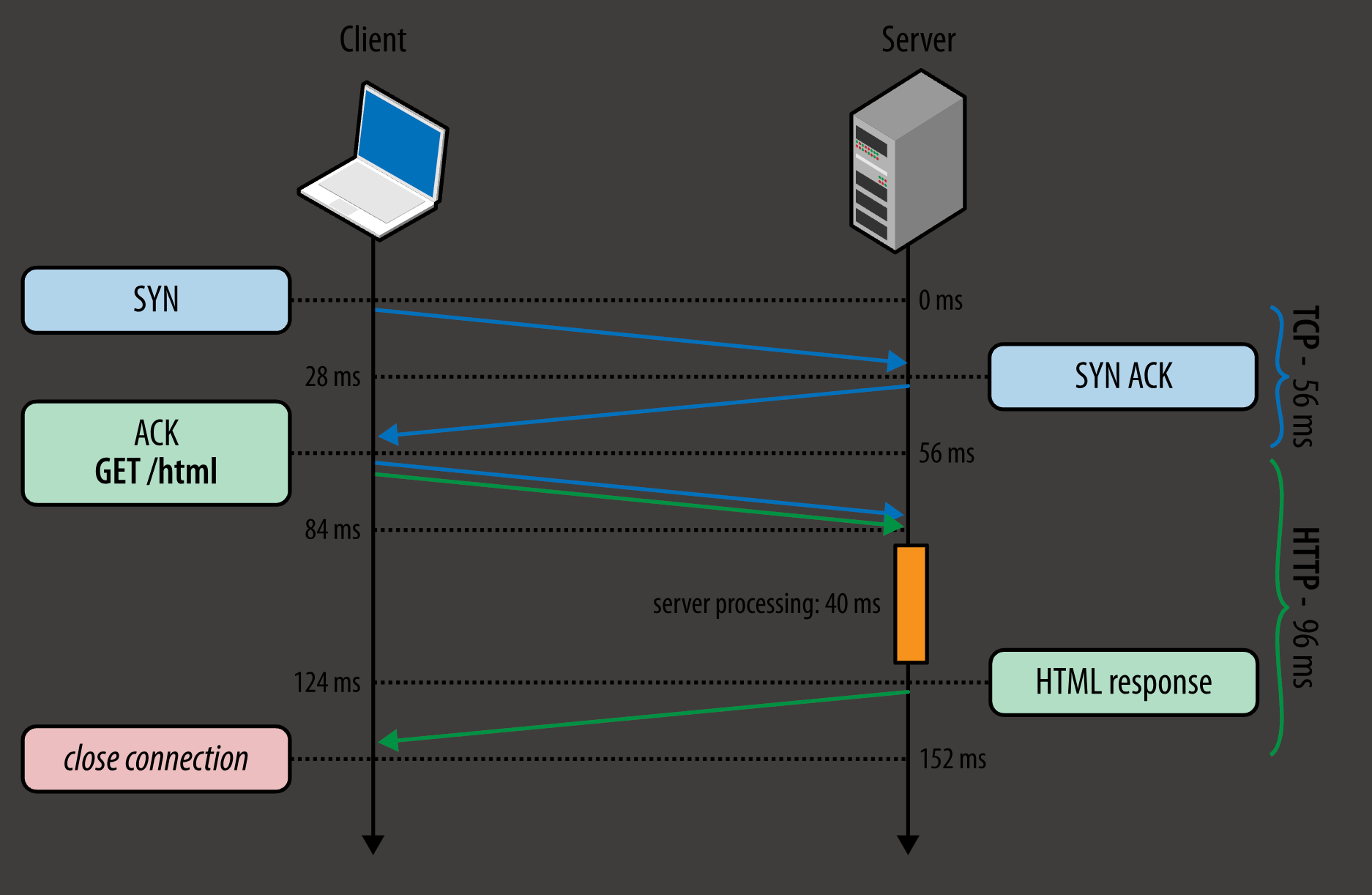 - 发送、接收请求: 1 RTT