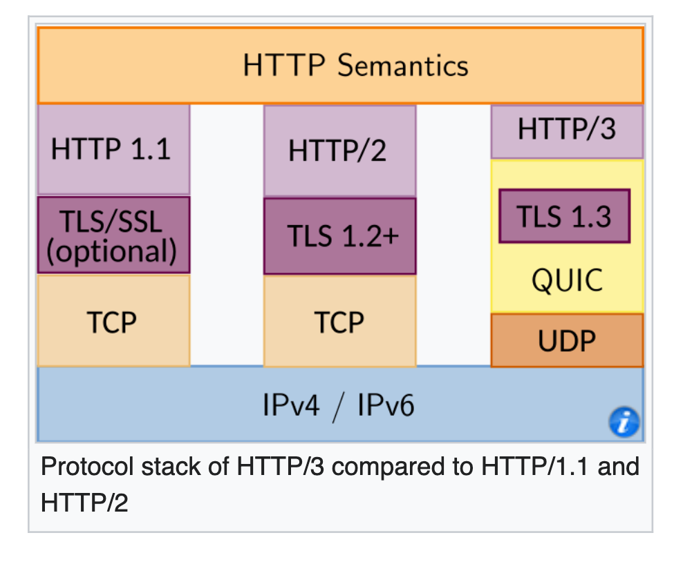 - TLS 在 TCP 中是可选的, 但是 QUIC 里是 内置 的, 一定有的