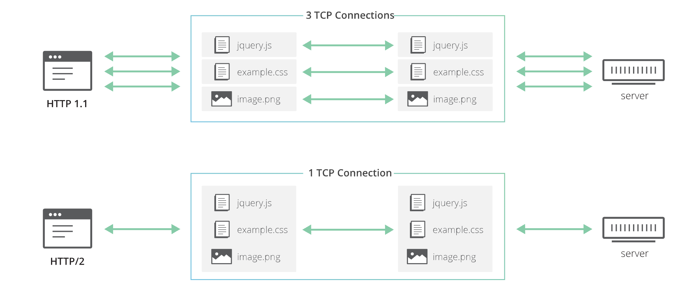 - 简单来说, 因为 http 2 的 multiplexing, 没有 keep alive 的情况下, 不同的请求也是通过 单个 TCP 连接来发的 → http 使用来看