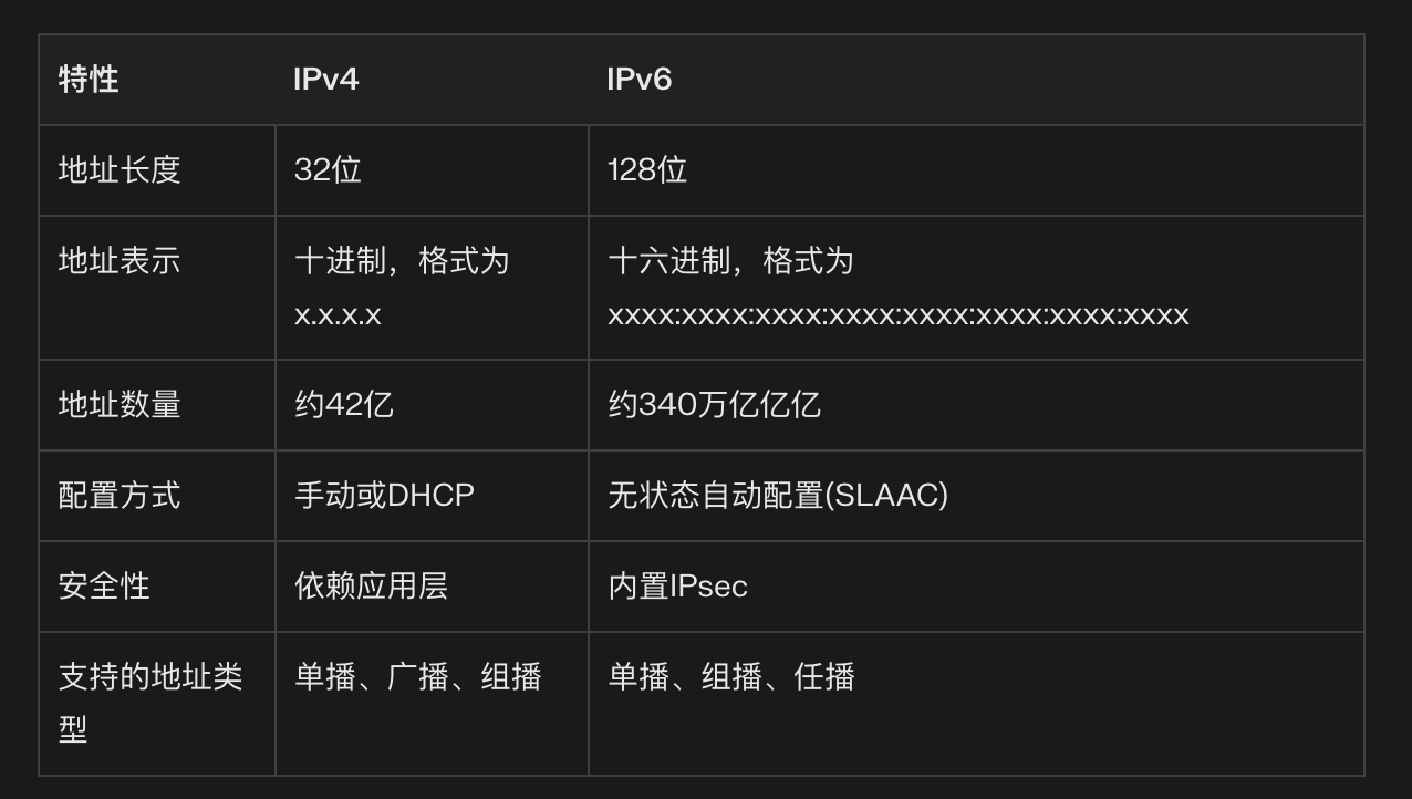 - 解决了 IPv4 地址干涸的问题 (address exhaustion)