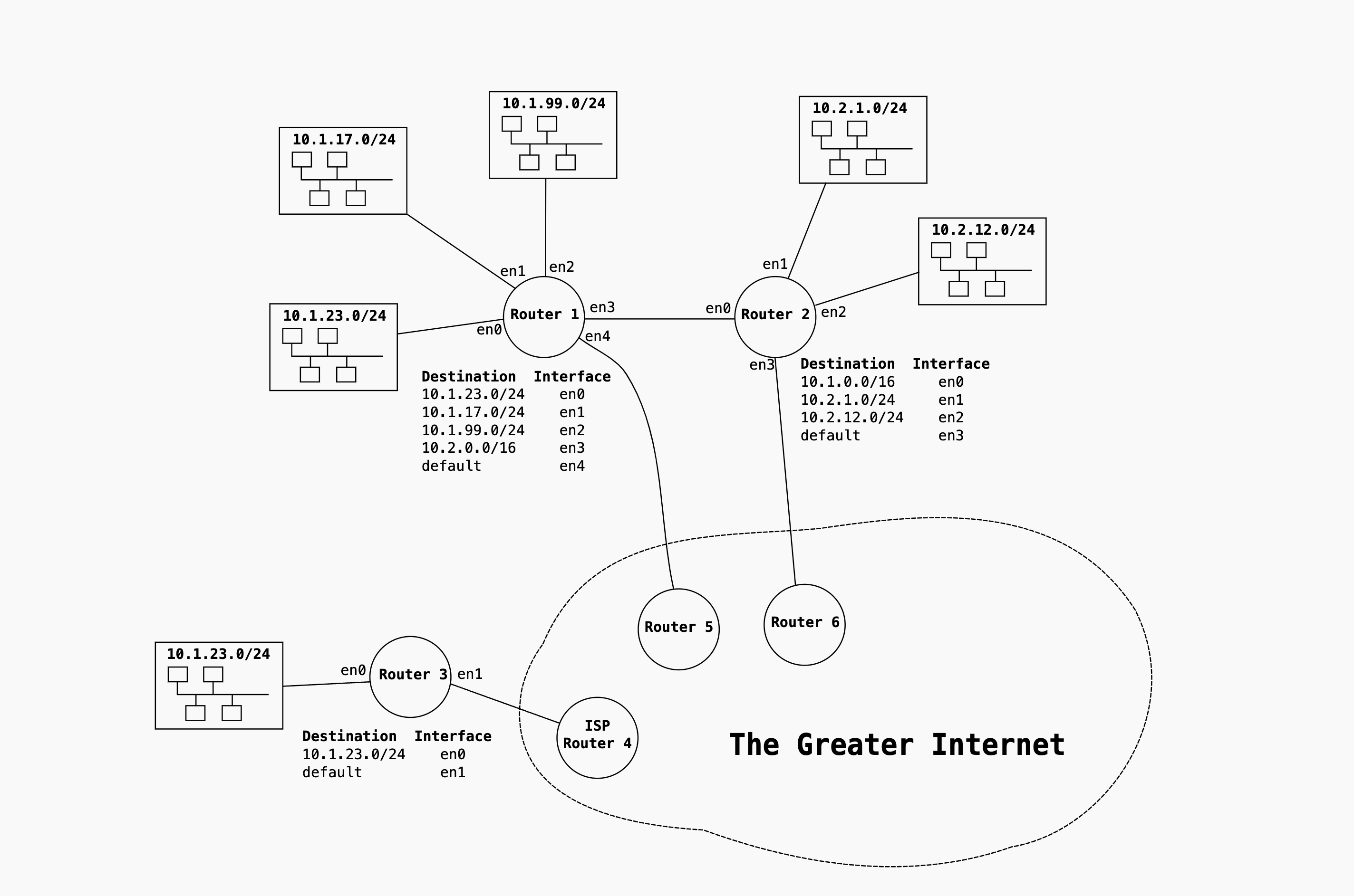 下面这张图, router1 连接了 3 个 subnet, 在每个 subnet 都有个自己的 IP 地址