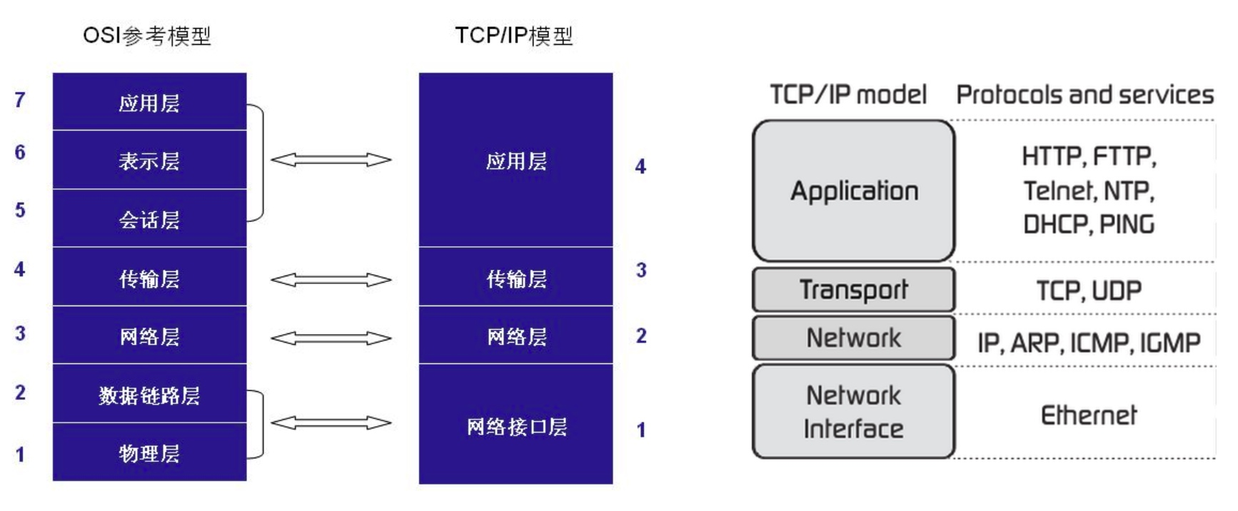 - TCP/IP 也是个模型, 4层 (应用层、传输层、网络层、数据链路层[网络接口层])