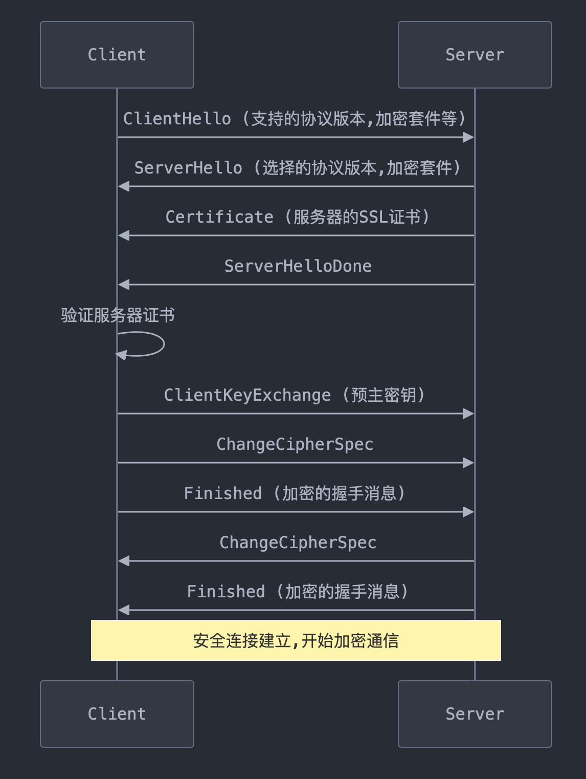 不同的加密算法的握手可能会不同, 这里讲的是 RSA