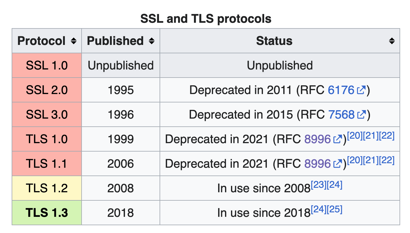 - TLS 1.0 和 1.1 都已经不用了, 有漏洞, 不安全