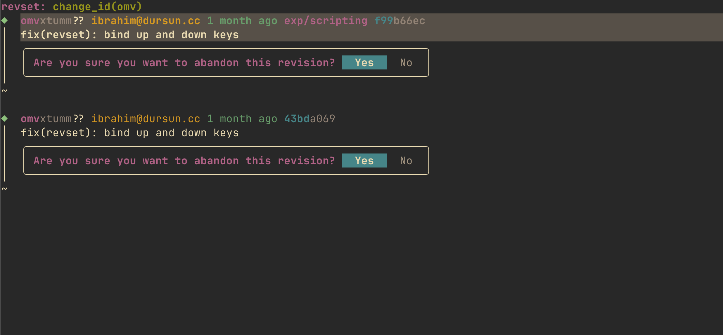 internal/jj/commands.gofor existing commands and https://jj-vcs.github.io/jj/ for jj’s documentation- hitting enter on a bookmark list entry updates revsets to be