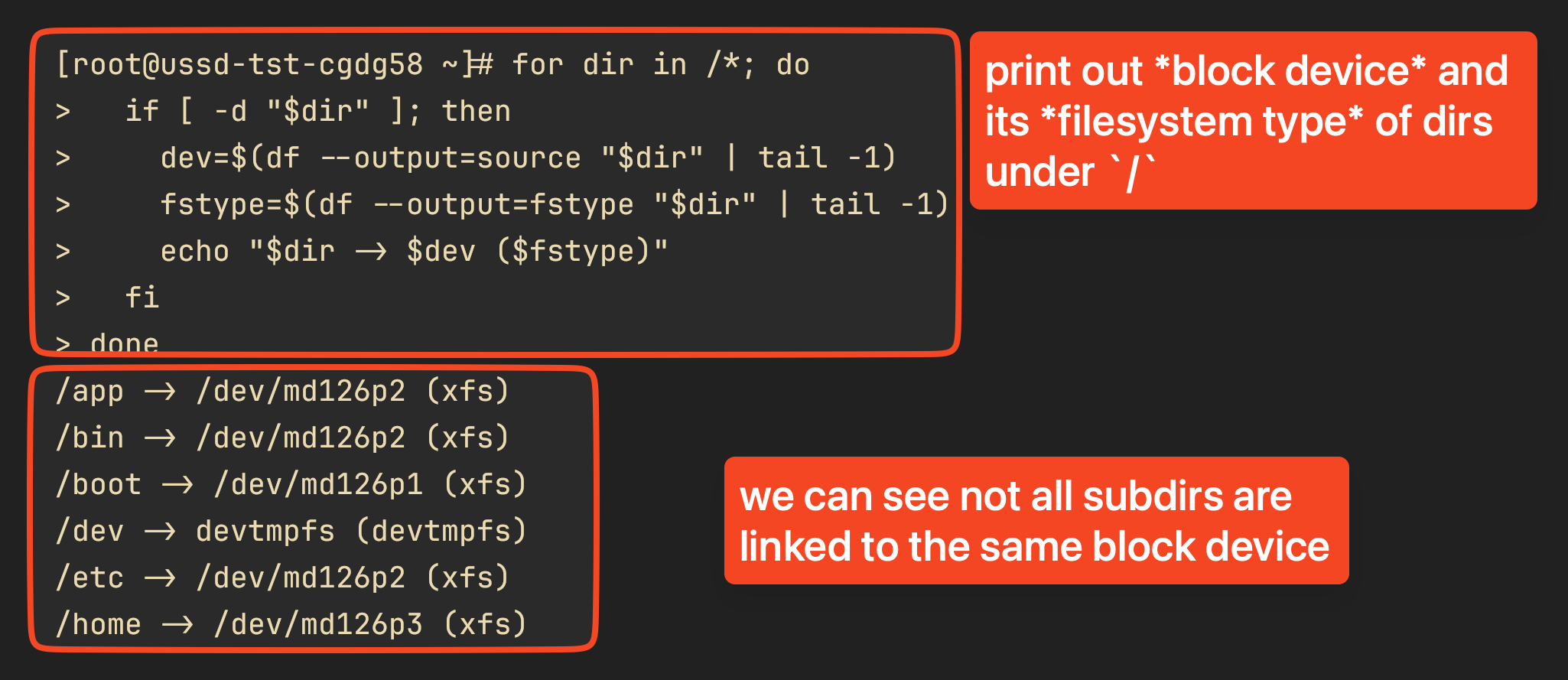 - when in reality, these two concepts (linux dir structure and filesystem/mounting/block-device) are not related in the way i thought